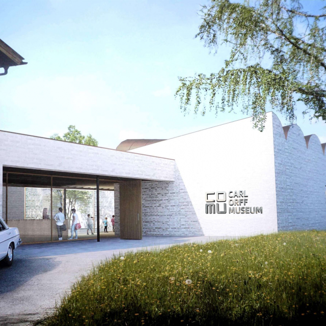 The foundation stone in the future foyer of the museum was filled with a pewter jug containing current coins, the latest edition of the Ammerseekurier newspaper, the museum design, a certificate and, as a personal addition, the wedding rings of Carl and Liselotte Orff.